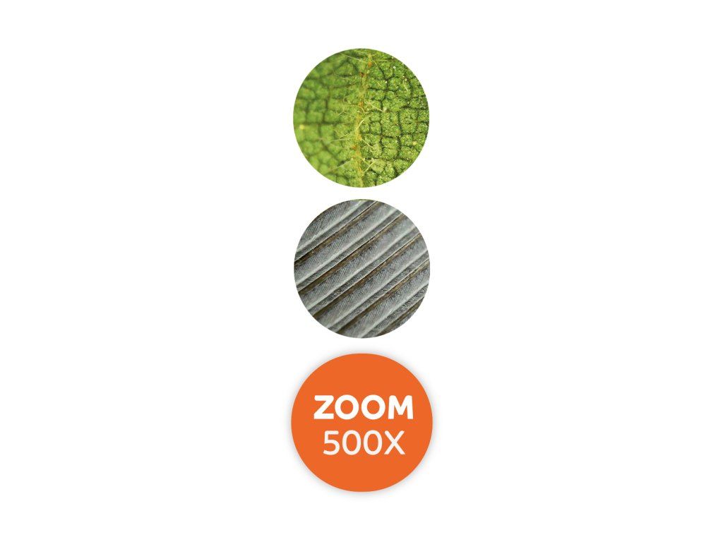 Zkoumat můžete např. detailní struktury minerálů, rostlin, textilu, živočichů a mnoho dalšího. Stačí jen využít vlastní fantazii. K dispozici je i klasická optická lupa zabudovaná v rukojeti.