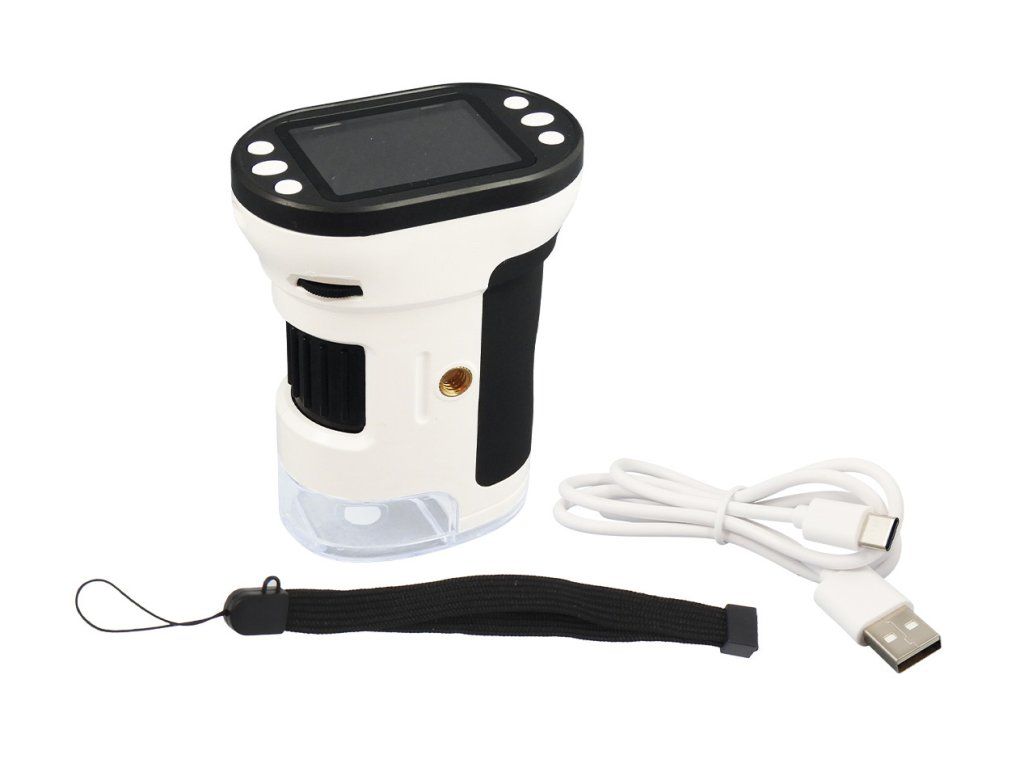 Hlavní výhody jsou kapesní velikost, detailní barevný LCD displej (úhlopříčka 5cm), LED podsvícení, možnost zvětšení od 200x až do 1000x, fotografování a natáčení videa. Mikroskop stačí přiložit na sledovaný objekt/vzorek nastavit sílu podsvícení a požadované zvětšení.