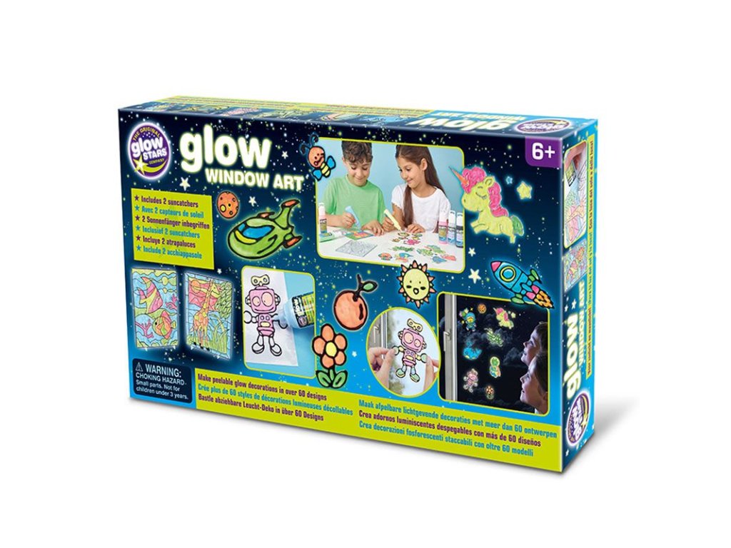 Vyrobte si sloupnutelné svítící okenní dekorace ve více než 60 vzorech. Vyberte si design nebo si vytvořte vlastní. Stačí zkopírovat obrys linkovou barvou a vybarvit svítící barvou. Po zaschnutí jednoduše sloupněte a vystavte na jakýkoli skleněný povrch – okna, zrcadla, hladké dlaždičky a další. Obsahuje také dvě krásné sluneční dekorace se stojany nebo zavěšením na okno.