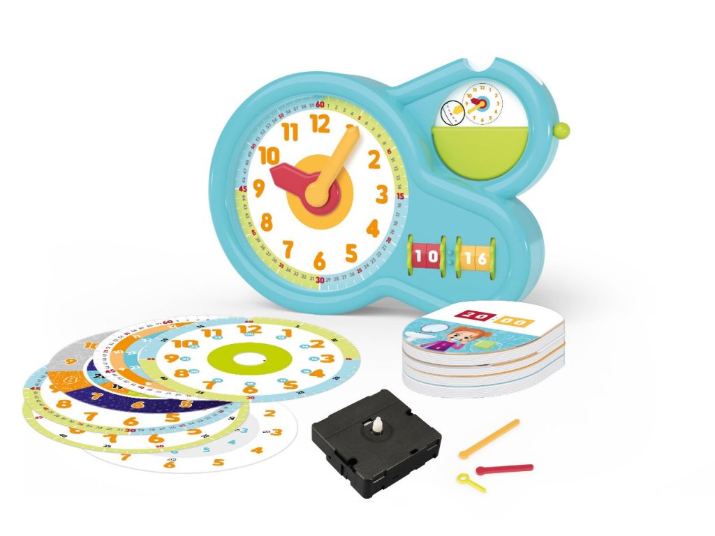 BUKI Moje první hodiny jsou ideální hračkou a učební pomůckou pro chylé seznámení s časem a čtením času jak na ciferníku, tak v číselné (digitální) podobě. Vhodné pro práci rodiče (nebo pedagoga) s dítětem. Nabízí možnost učení a čtení času ve 12 i 24 hodinovém systému. K dispozici jsou různé varianty ciferníku podle dosaženého stupně výuky.
