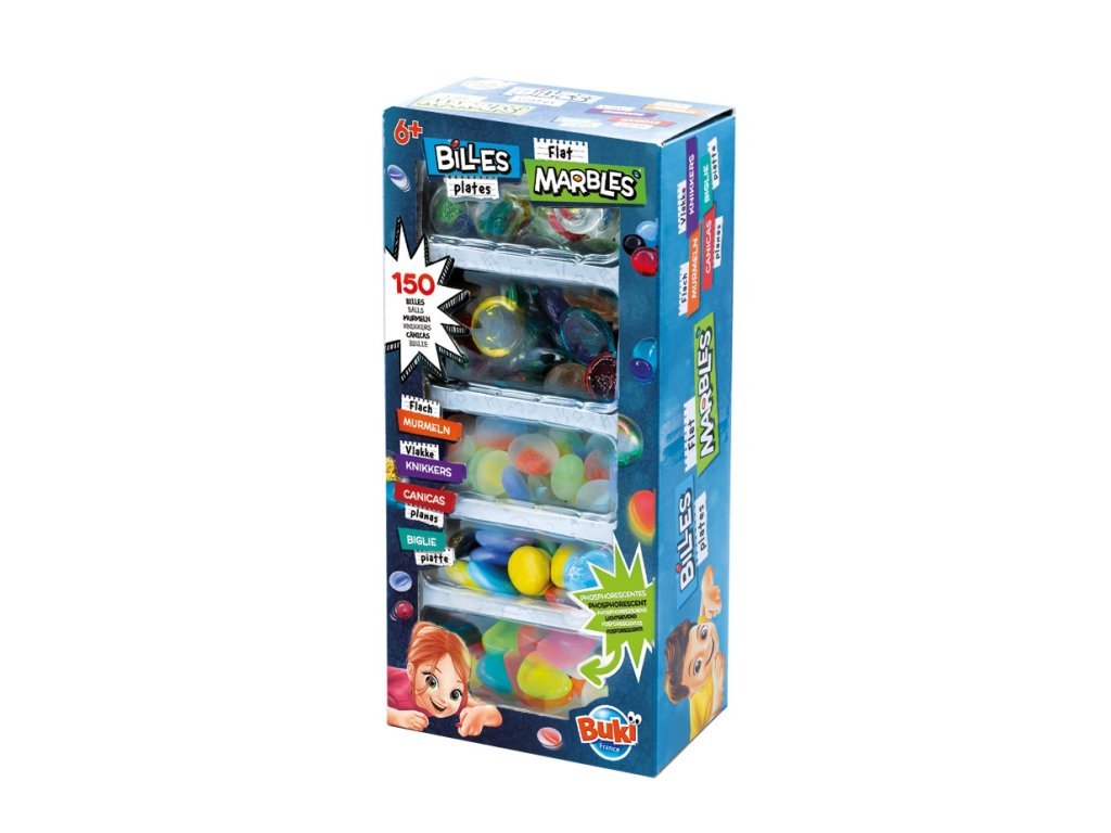 Box obsahující 150ks plochých a atypických kuliček (tvar čočky, fazole, šišaté apod.) pro hraní kuliček na hřišti nebo na zahradě!